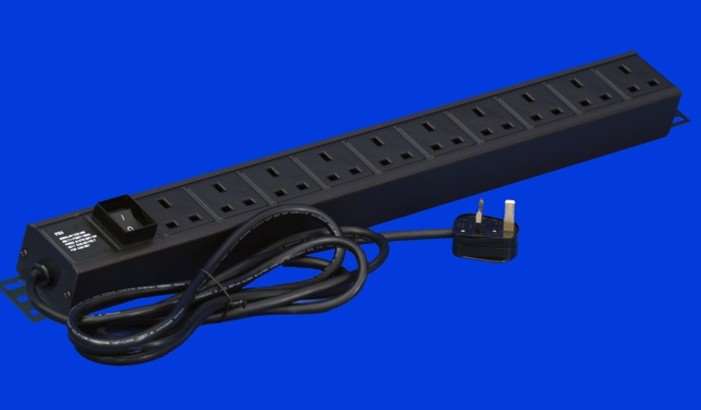 • 黑色10位国标PDU,16A国标三扁插头输入,10A万用插座输出,带总开关,线长3米,反方向安装